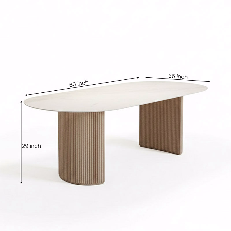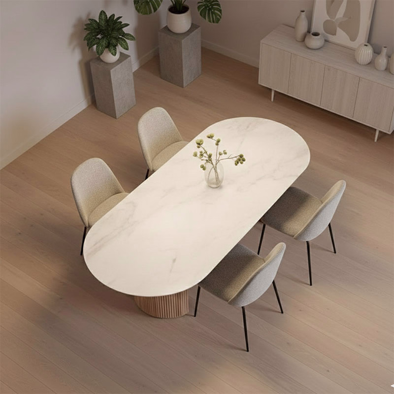 Yes, it works well as an oval marble dining table for small dining space due to its smooth edges and efficient footprint.