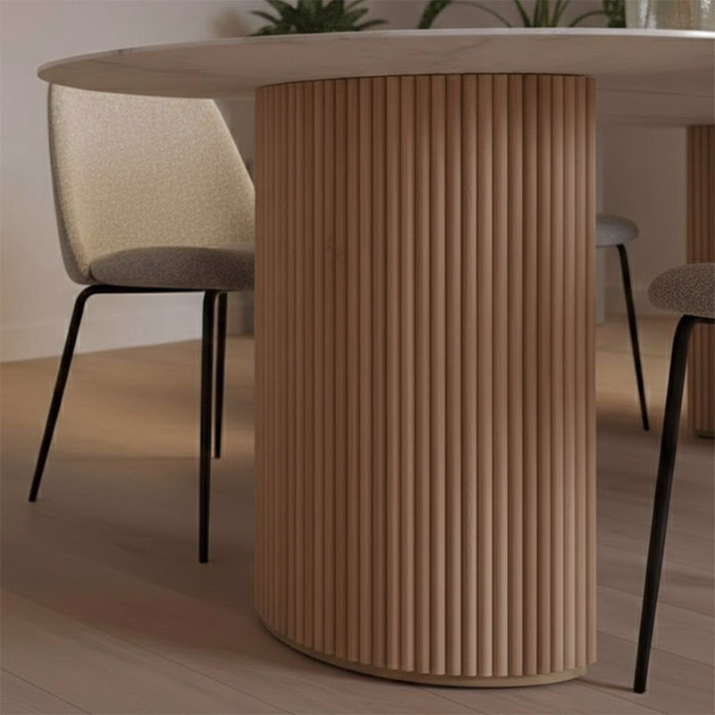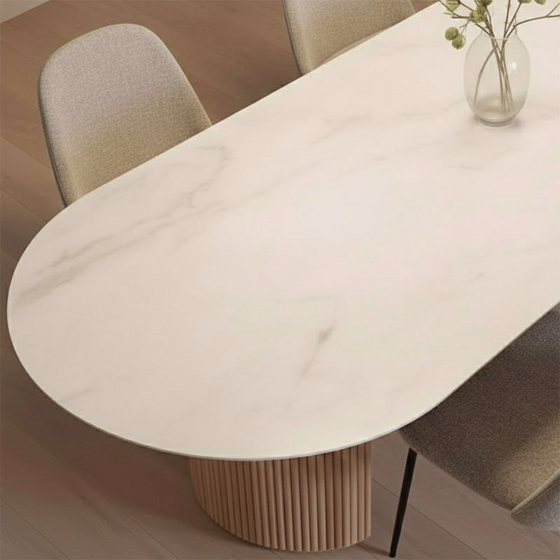 Designed with a smooth oval silhouette, this table offers a safer, more space-efficient alternative when comparing oval vs rectangular dining table for home layouts. The absence of sharp corners improves movement and makes it ideal for families, children, and compact interiors. For buyers wondering is marble dining table good for daily use, the answer lies in the natural strength of marble—heat-resistant, long-lasting, and easy to maintain with proper care.