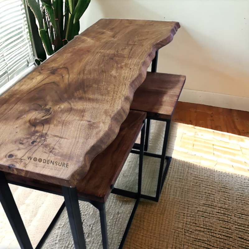 Introducing this "Acacia Live edge Console Table" dazzling mix of rustic beauty and organic reach that draws the glory of nature inside your home. The console table shows the natural beauty of wood with its live edge wood table top and natural wood finish, giving a touch of stylish rustic charm to any space. Here's a thorough definition.