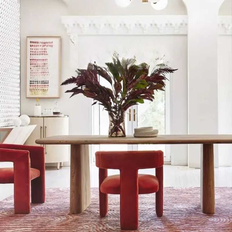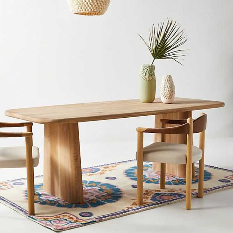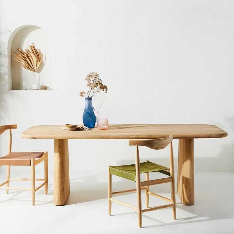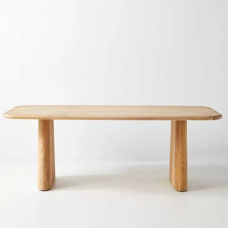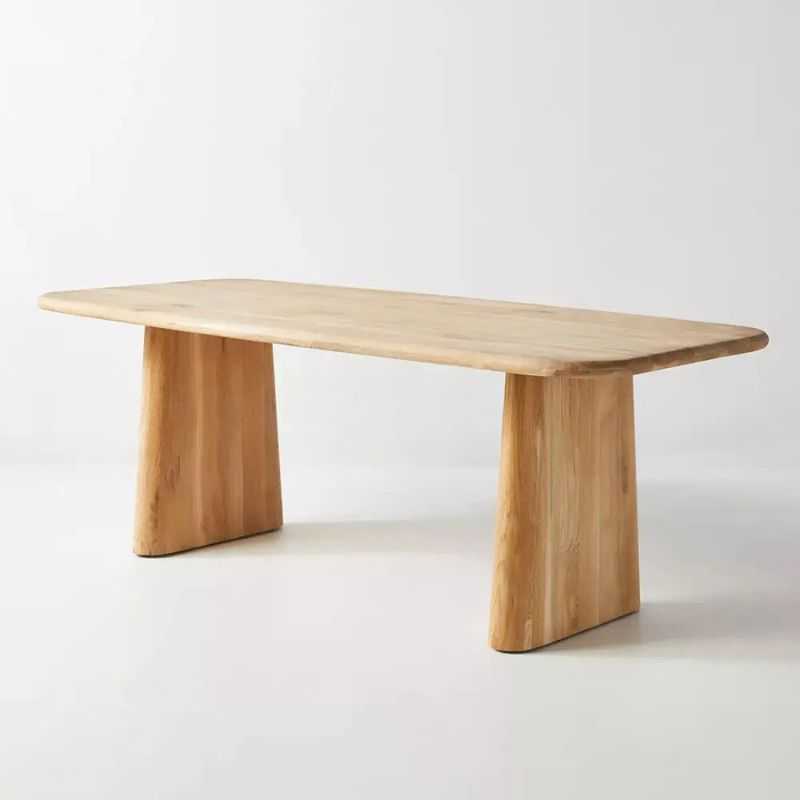 Elevate your dining space with this Acacia Wood Pedestal Dining Table, crafted for lovers of clean lines and organic warmth. The broad solid acacia slab top showcases rich wood grain and natural knots, while the dual sculptural pedestal bases offer a striking modern silhouette and exceptional stability. Finished with a hand-sanded smooth surface and natural oil sealant, this 6-seater table is perfect for contemporary, Scandinavian, or Japandi interiors seeking both artistry and everyday durability.