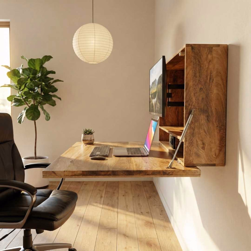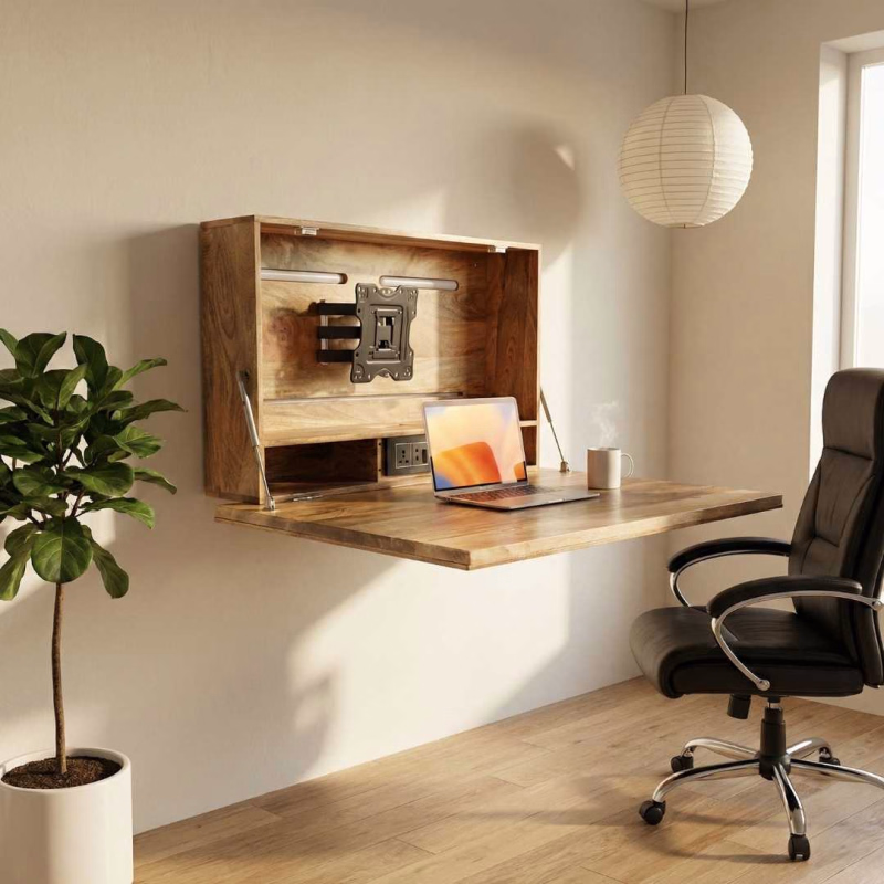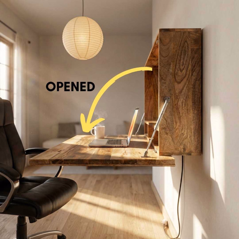 Maximize your space with the Acacia Wood Wall Mounted Fold Drop Down Desk/Table β a premium drop top desk designed for modern Indian homes and offices. Crafted from solid acacia wood, this wall mounted wooden desk blends durability, elegance, and intelligent space-saving functionality. Whether you are searching for a droptop desk India solution or a stylish fold down wall desk for compact living, this design transforms your wall into a functional workstation within seconds.