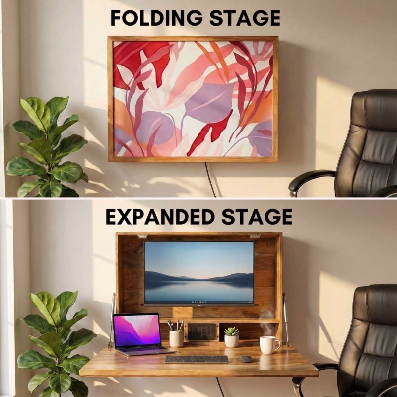 Built with a smooth drop leaf mechanism and heavy-duty hydraulic support, this drop down wall desk transitions effortlessly from a sleek wall panel into a spacious work surface. It functions beautifully as a fold down computer desk, droptop workstation, home office drop top, or even a fold up wall table for dining and study use. The integrated plug-in board with USB ports makes it ideal as a wall mounted foldable computer table for modern digital needs.