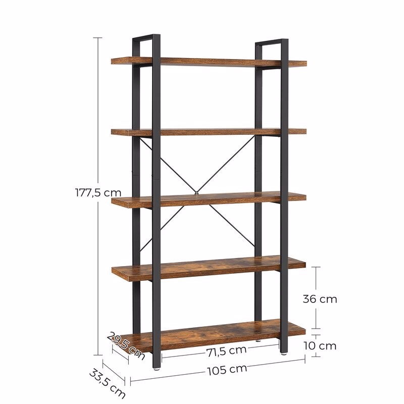 Built for both strength and elegance, the robust metal frame ensures excellent stability, while the solid wood shelves offer generous space for books, décor accents, plants, and personal collectibles. The angular design adds depth and character, enhancing the overall visual appeal without overwhelming the space. Its open structure allows light to flow freely, giving your room an airy, uncluttered feel while keeping your essentials easily accessible.