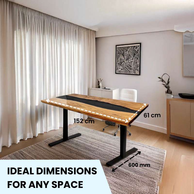 Astronix black opaque height adjustable table with black legs - Black Epoxy Resin