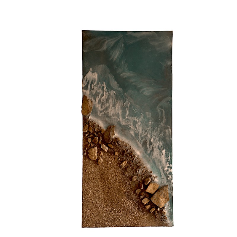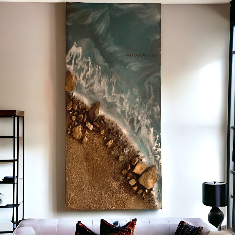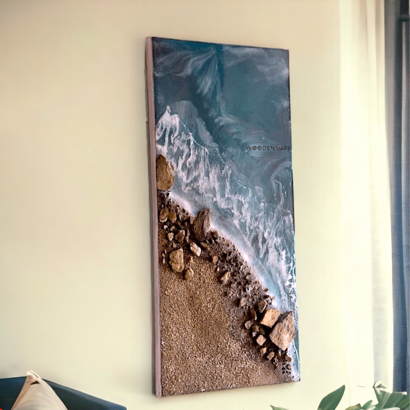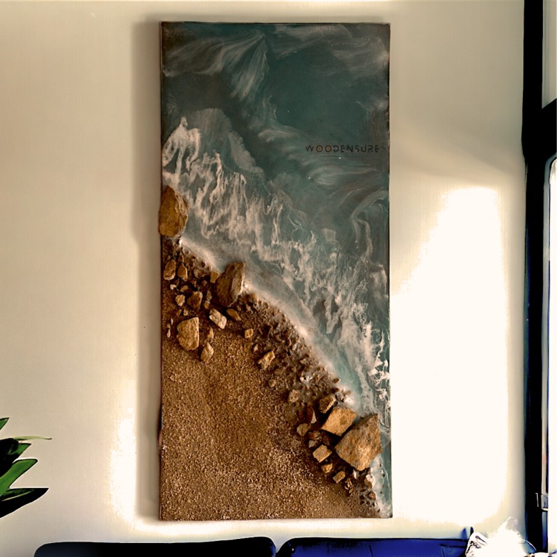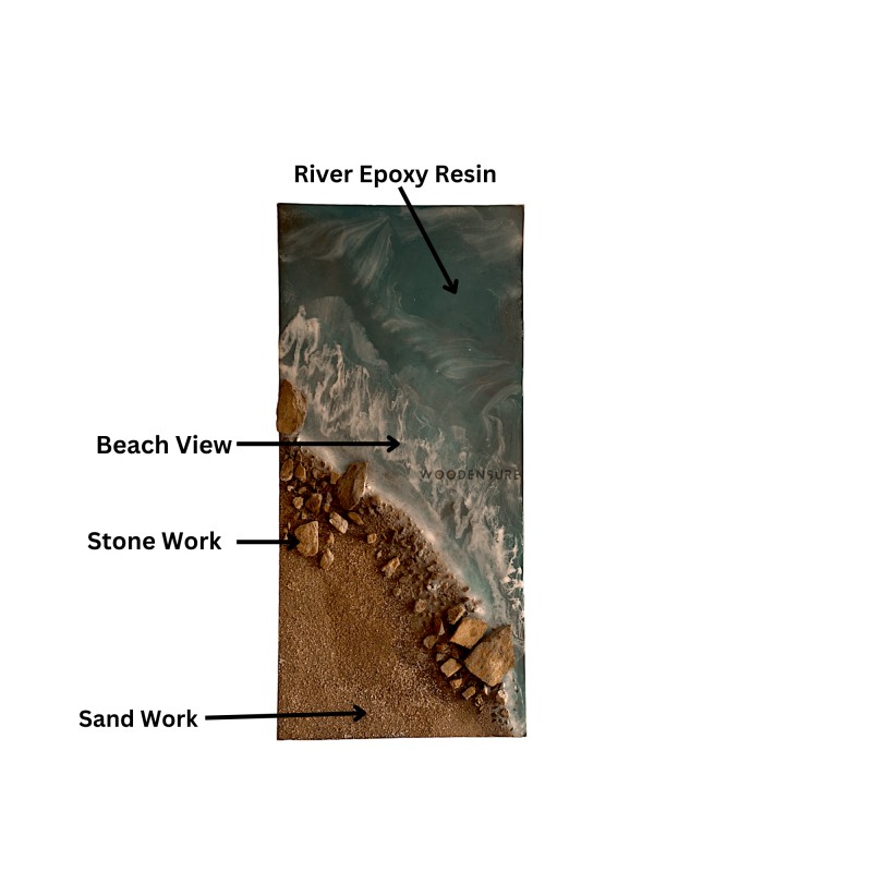 Artistic Enhancement: To further intensify the impression of a beach setting, the artist may work with the texture and flow of the curing resin to create dynamic patterns or waves. The addition of other elements, like foam or froth effects, can simulate the motion of waves crashing on the coast.