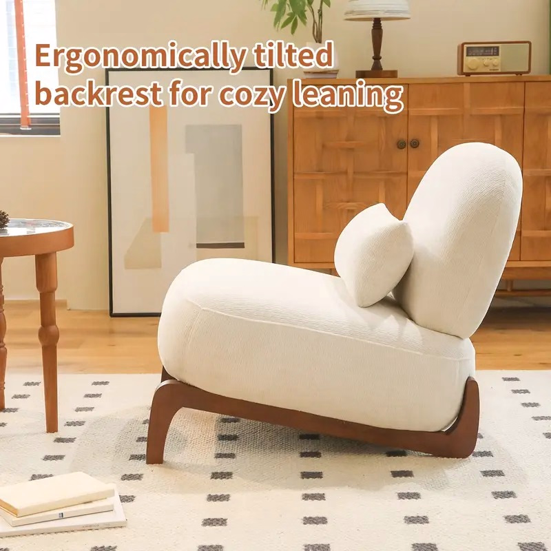 The modern armless accent chair has a compact, space-saving design perfect for small corners or cozy nooks.