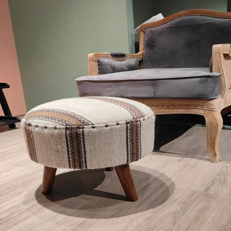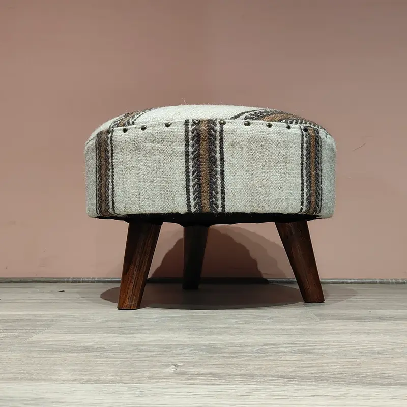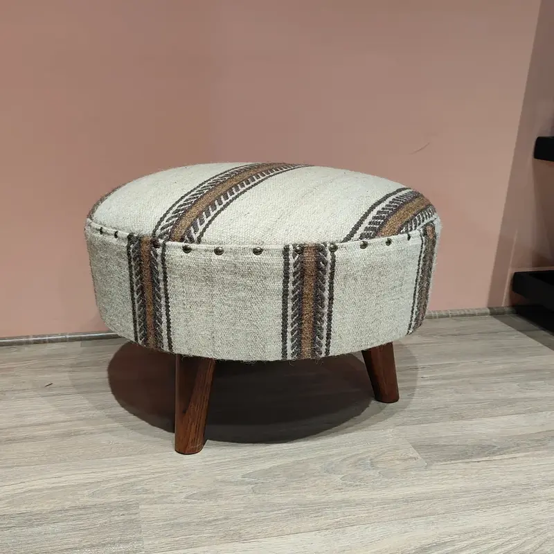 This Bohemian Striped Pouf Stool is perfect to introduce a rustic look into your home interior. Made from a chic striping material, it is comfortable and fashionable as an ornament in your living or bedroom area. The wooden legs of the chairs are strong, and coupled with the soft sitting surface, it stands as an ideal chair. This pouf is accentuated for simple design and portability to act as both a footstool and an additional seat, or as an accessory to complement the interior design of a small home or apartment with a modern or retro touch. for placing perfect to add warmth and that special style to your room.