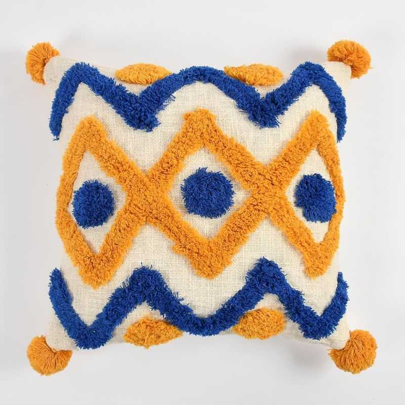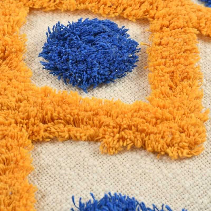 ✔️ Handcrafted Texture – Soft tufts in yellow & blue for rich tactility