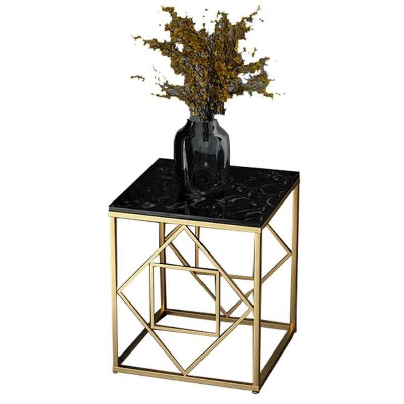 Elevate your space with the Calista Side Table by WoodEnsure, a perfect blend of modern luxury and elegant design. Featuring a glossy black marble top and a striking gold frame with a geometric open structure, this piece adds sophistication to any room.