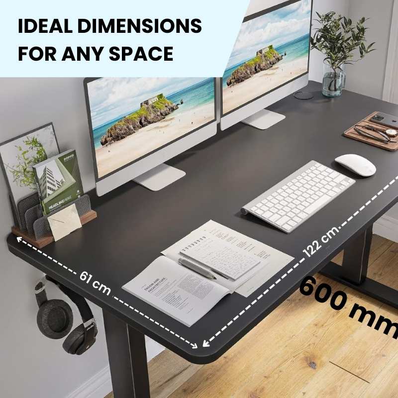 This Electric Adjustable Table, a 48-inch Black engineer wood table with black legs comes with a height adjustment option, and is equipped with an electric motor that helps adjust height in no time. Electric sit & stand desk that is stylish, functional, and affordable. Crafted Options are available in engineer wood, Up & Down Tables have different designs and colours and a metal frame, this electric adjustable table is beautifully eye-catching and serves as a functional to complement your work environment for office and home needs.
