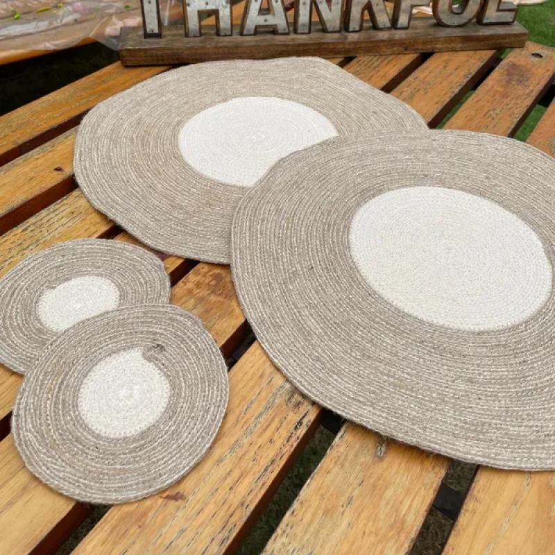 Introducing Circle of Serenity White Jute Placemat into your dining environment will add organic beauty to the dinner table. Having been specifically designed to provide comfort while dining, this placemat has a jute texture coupled with a plain white color to give any diner a good table feel. Whether you are dining with family in a home setting, having a hearty snack, or simply making a simple design addition to your everyday table setting, the Circle of Serenity Placemat is a perfect complement to add an aura of timeless elegance to your table while bringing in an aspect of sustainability with its materials.