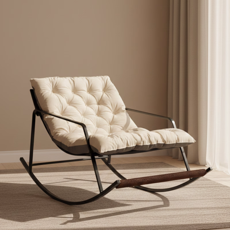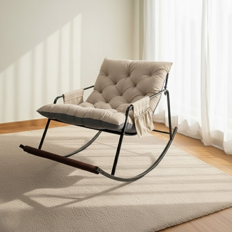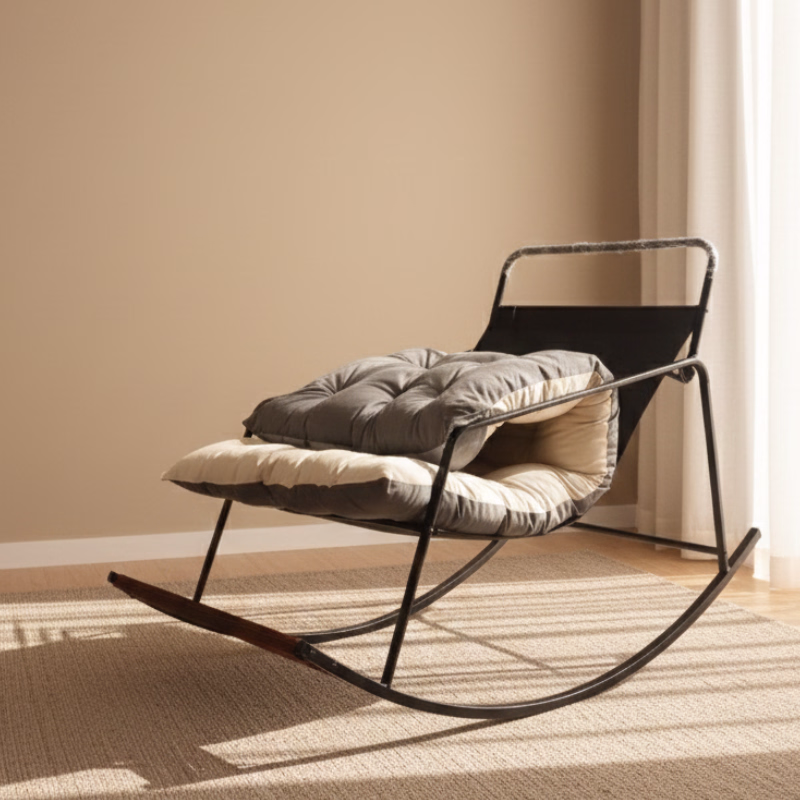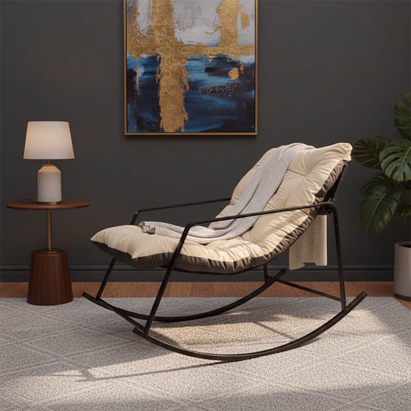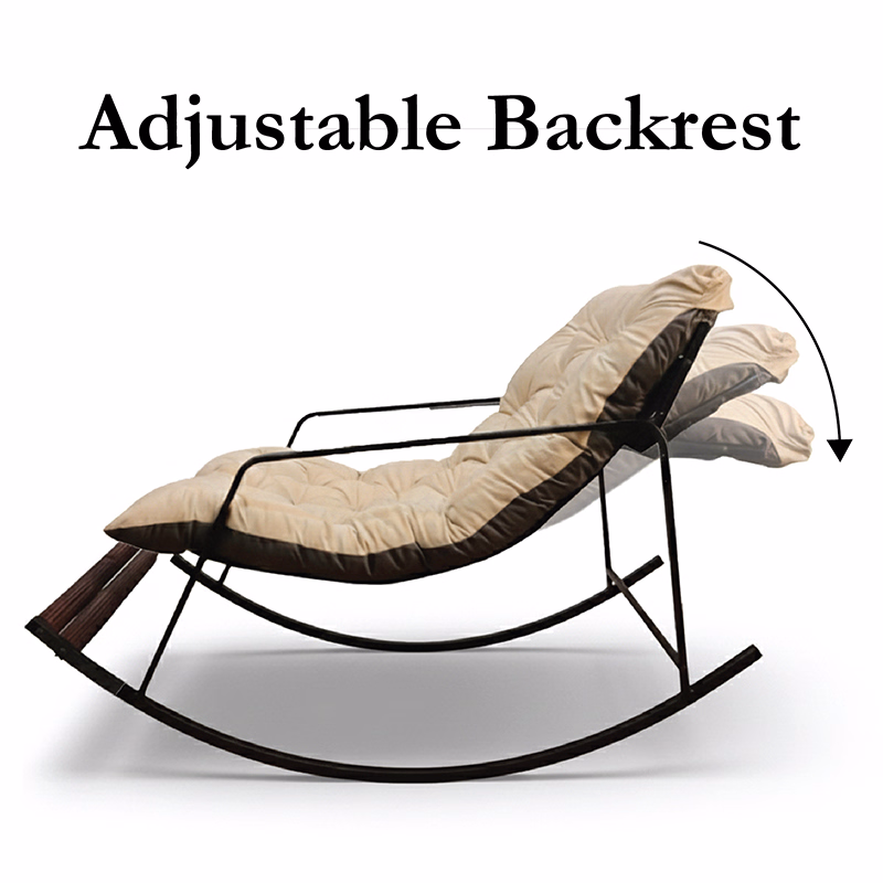 Crafted with a black powder-coated steel frame, this durable metal rocking chair offers long-lasting stability while maintaining a sleek, contemporary look. The adjustable backrest allows you to customize your seating angle, making it an ideal recliner rocking chair for reading, resting, or gentle massage therapy.