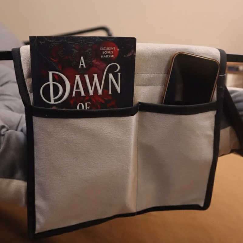 Yes, it includes a built-in side pocket for convenient storage of books, phones, or remotes.