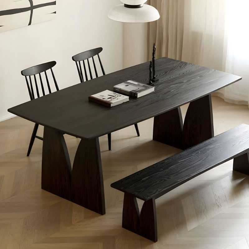 Black Solid Acacia Wood Dining Table | Rectangular Minimalist 6-Seater Only Table | Natural Finish | 60 x 36 x 30 Inches