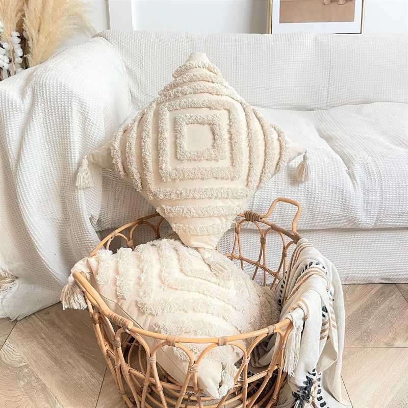 Textured Comfort: Made from soft, breathable 100% cotton with hand-tufted diamond patterns for a tactile, inviting feel.