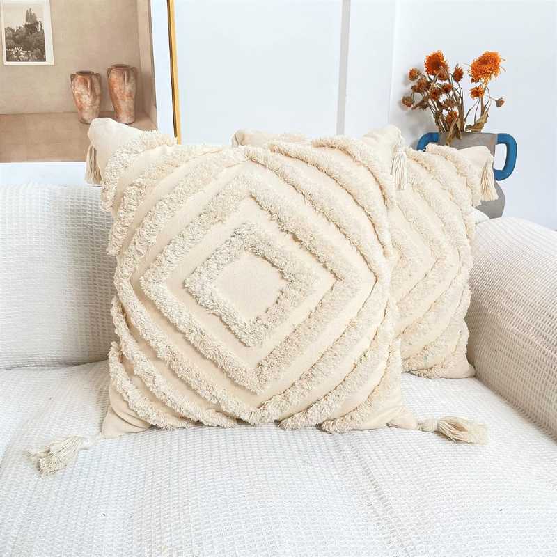 Add subtle elegance and cozy comfort to your space with the CozyDiamond Duo cushion covers by Woodensure. Featuring a plush cotton tufted texture with a raised diamond pattern, these 16x16 inch covers infuse Scandinavian-inspired simplicity into any living or bedroom setting.
