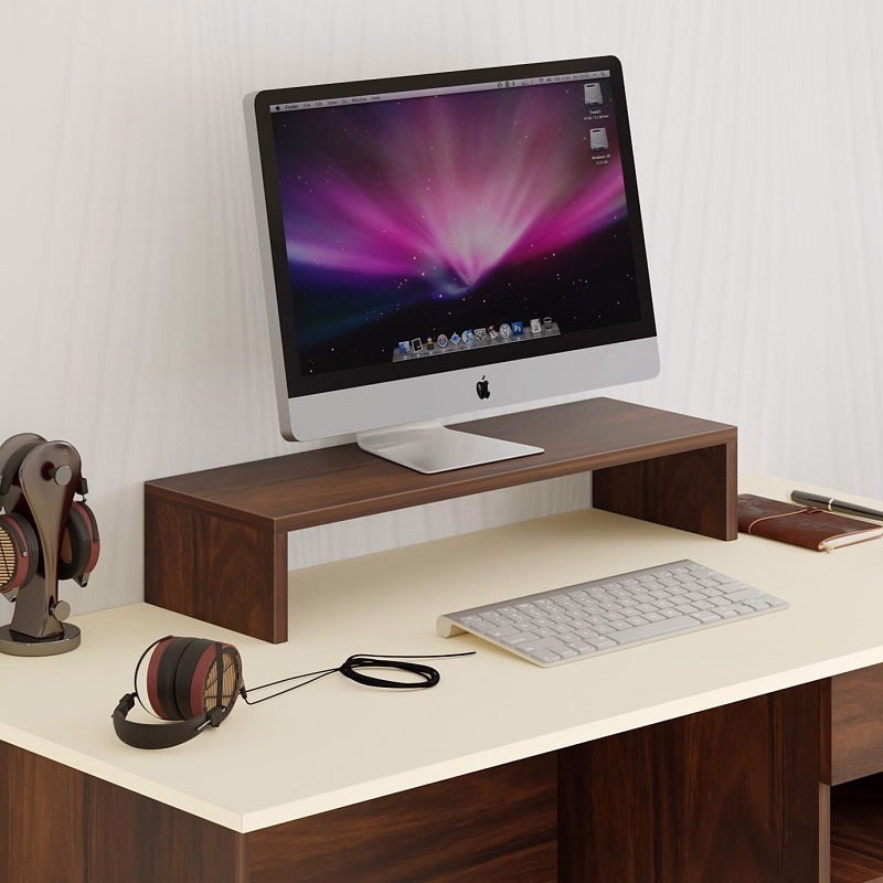 Make your workstation more contemporary by using our adjustable Monitor Riser. There is plenty of space below this is a desktop monitor stand for storing essential items, such as speakers, a keyboard, and a mouse. An additional advantage of raising your display to eye level is that it promotes better posture when working. For a sturdy and fashionable workstation solution, choose our natural solid wood single or twin monitor stands.