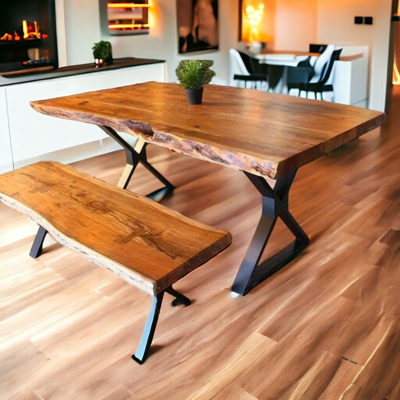 Customized Live Edge Dining Table Wooden Rustic Dining Table With Bench