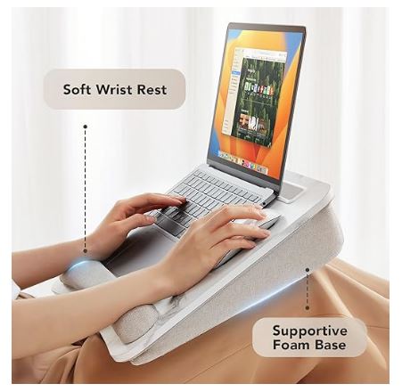 • Comfortable wrist pad: Our laptop lap desk is built with a sturdy platform and cushioned pillow that conforms to your lap to provide more comfort and stability.