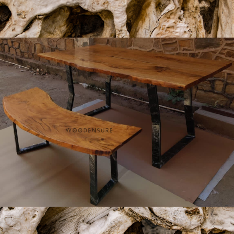 Farmhouse Live Edge Solid Wood Table With Bench