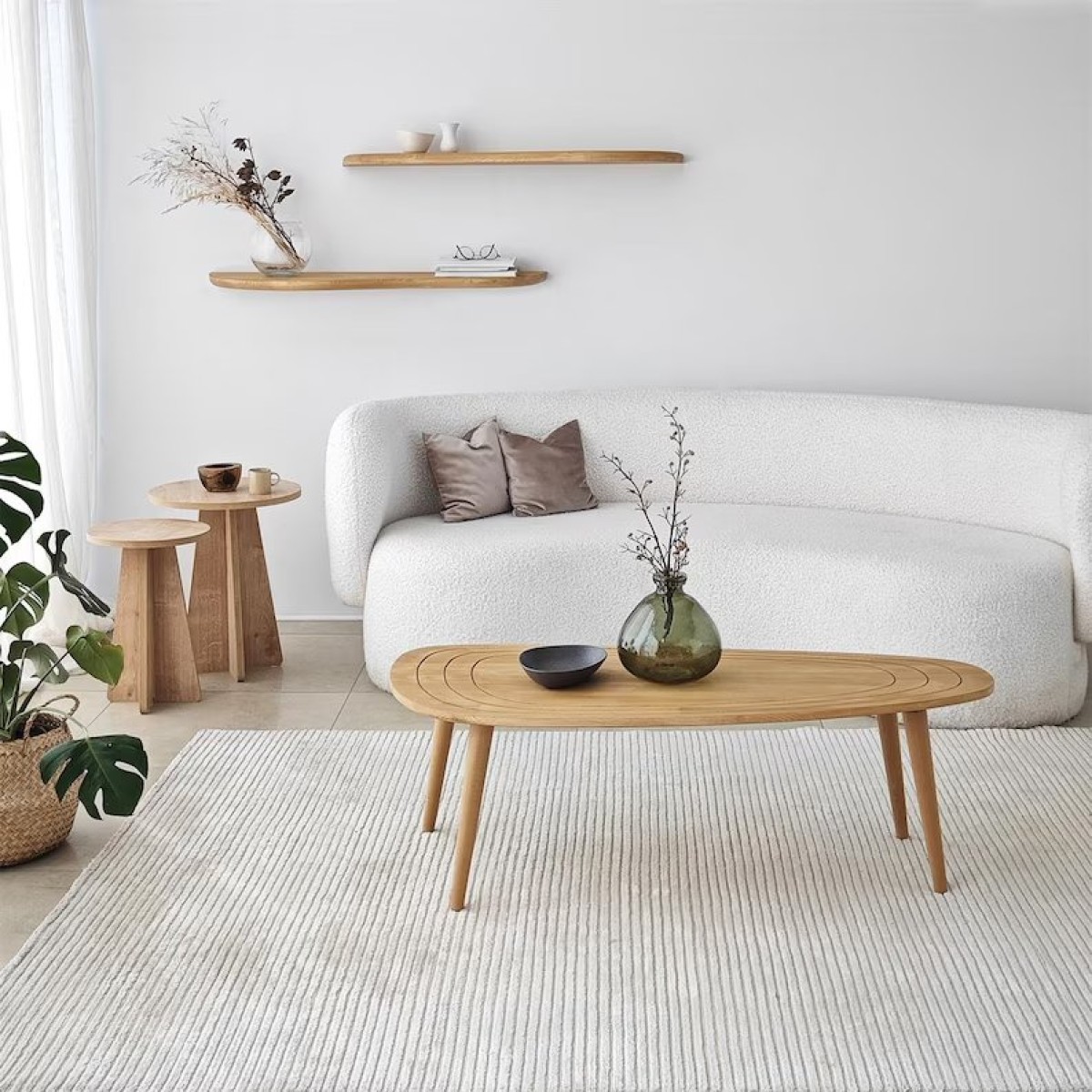 The "Flow Solid Wood Floating Wall Shelf Set Of 2" created by Woodensure - the very embodiment of contemporary design and functionality, adding a touch of urbanity to your living room.