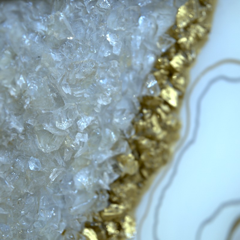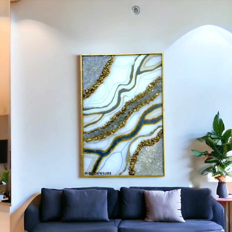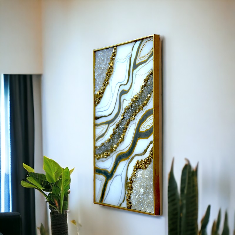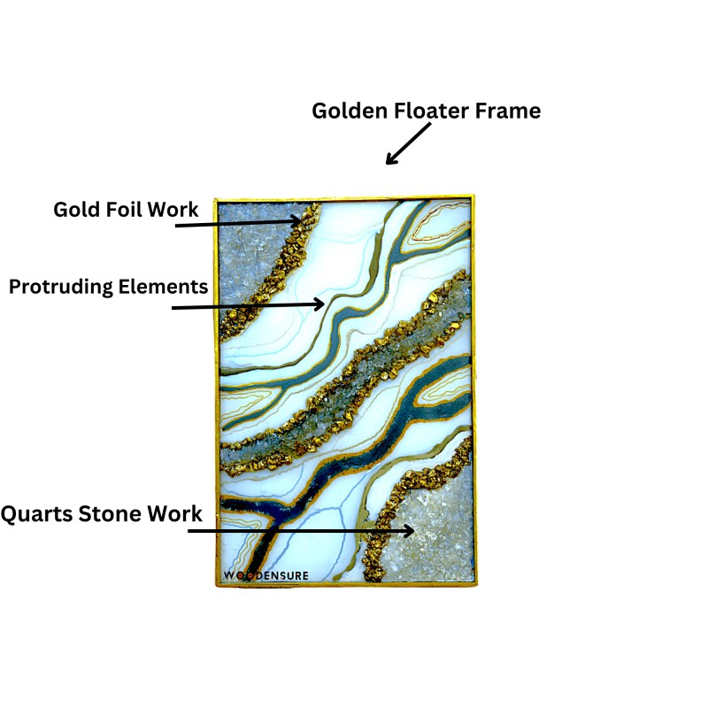 With its beautiful golden hues and radiant quartz crystals, the "Golden Sands Radiance" Quartz Wall Art is a lovely piece that perfectly captures the essence of coastal glory. Hand-selected quartz crystals are arranged in the artwork, which is highly detailed and meant to represent the eternal beauty of sandy coasts. The captivating play of golden tones is produced by the quartz's translucent surfaces catching and reflecting light. The quartz crystals are magnified to unprecedented heights and kept in their original splendor thanks to a glossy epoxy resin coating. The artwork's depth and dimension are enhanced by the smooth, glass-like surface, which invites viewers to immerse themselves in its glowing radiance. This stunning artwork radiates coastal elegance and is likely to attract and inspire.