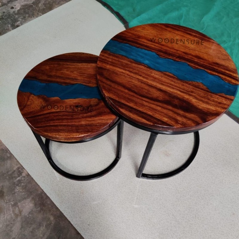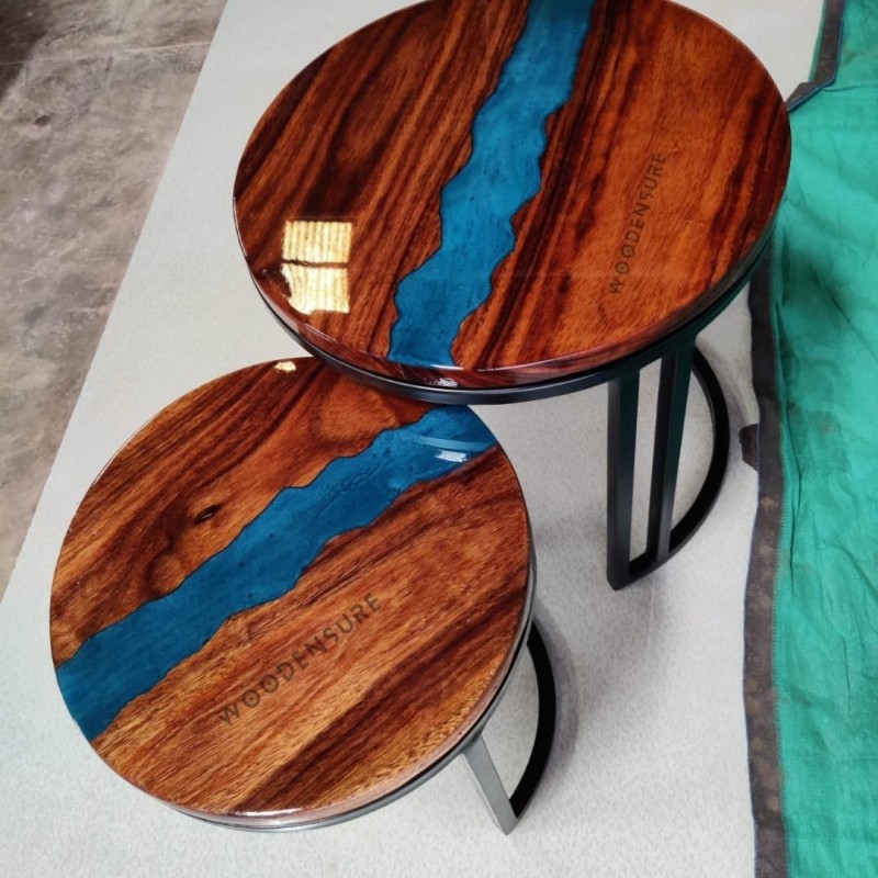Handcrafted Excellence: Taking the stage our Round Epoxy Resin Wave Effect Nesting Table Set Of 2 made to uplift your living space with touch of style, efficacy, and comfort. The table is handcrafted using meticulous precision and a dedication to detail, delivering a blend of handmade mastership, exceptional design, and diverse attractiveness.