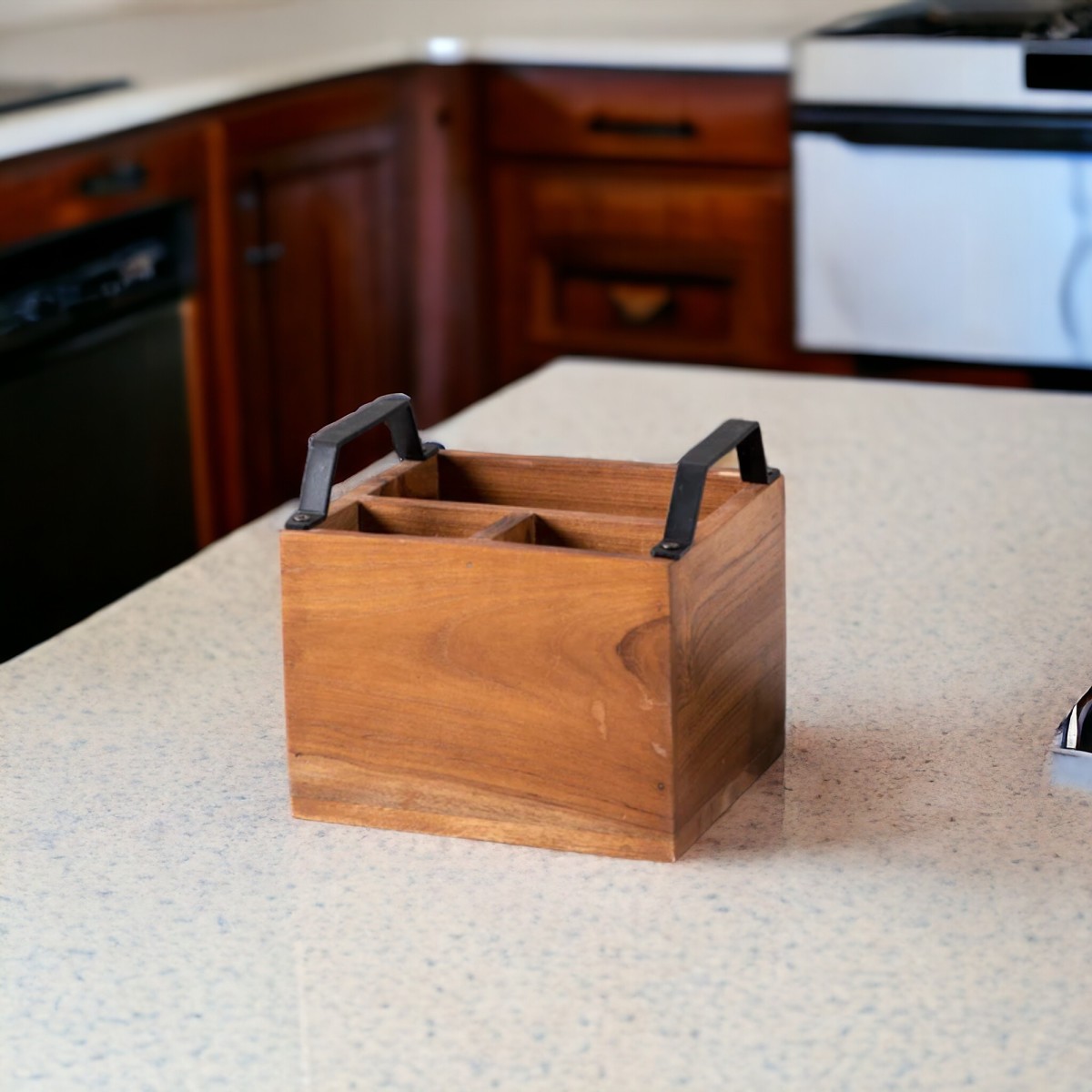 Introducing the Inseparables Acacia Wood Cutlery Holder, a versatile and stylish addition to any kitchen or dining area. This cutlery holder, made from high-quality teak wood, is intended to keep your utensils organized, accessible, and beautifully displayed.