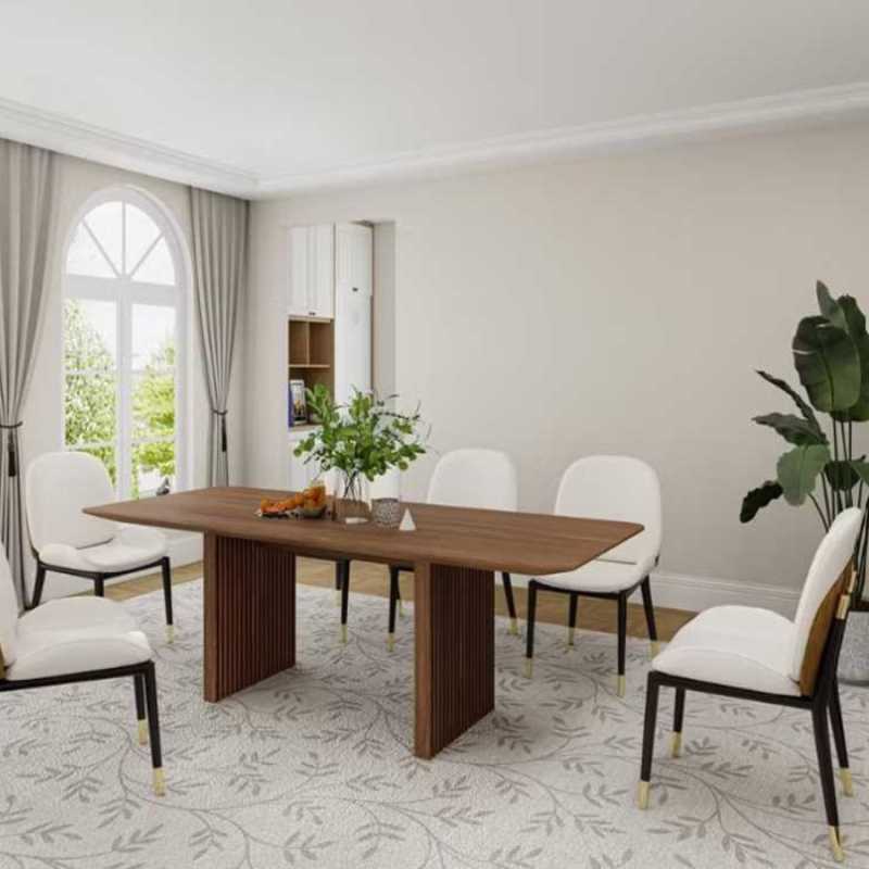 Enhance your dining experience with the LinearOak Luxe Dining Table by Woodensure, crafted from premium Acacia wood for natural durability and warm sophistication. Featuring a rich walnut stain and signature fluted base, this 6-seater table embodies Japandi aesthetics — where form meets purpose in minimalist elegance.