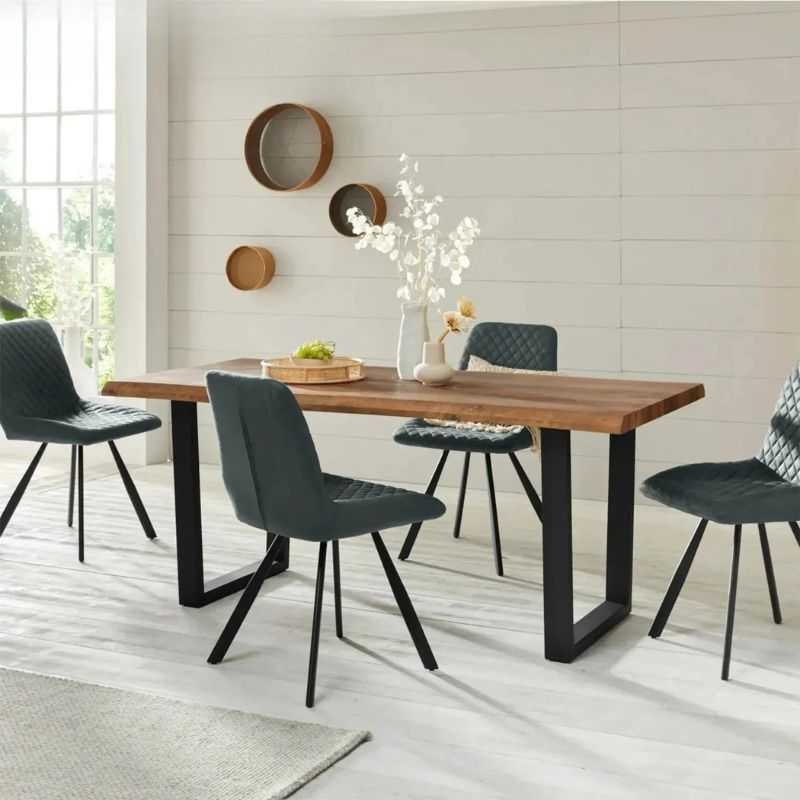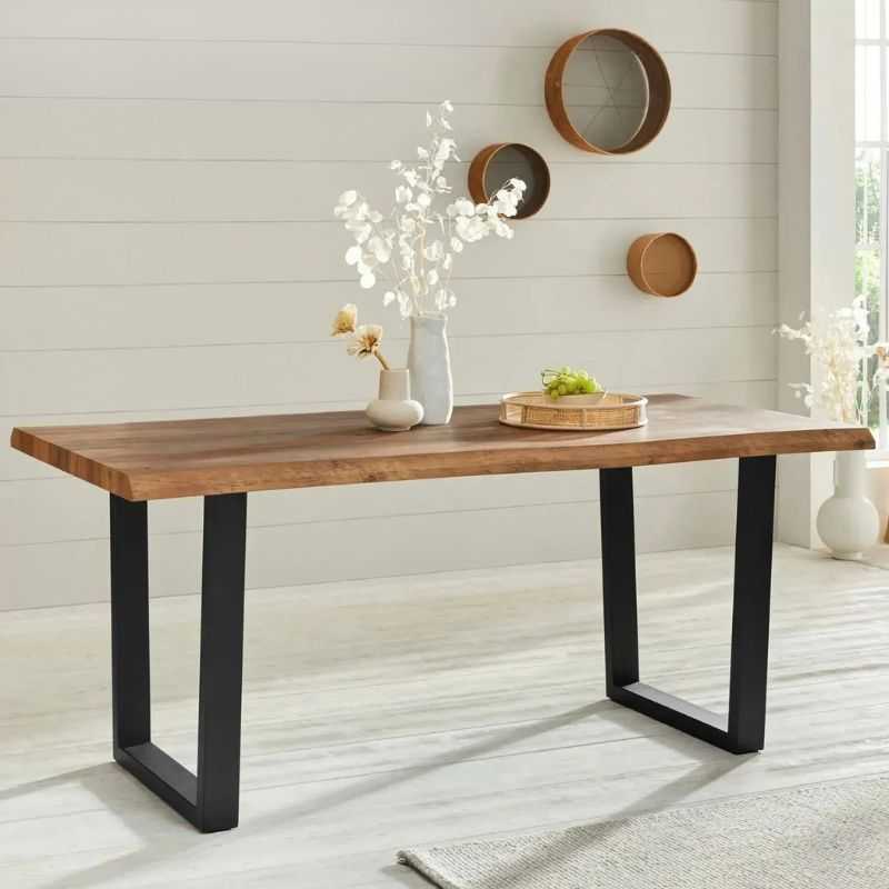 โข Hand-finished live edge table top in rich Acacia wood