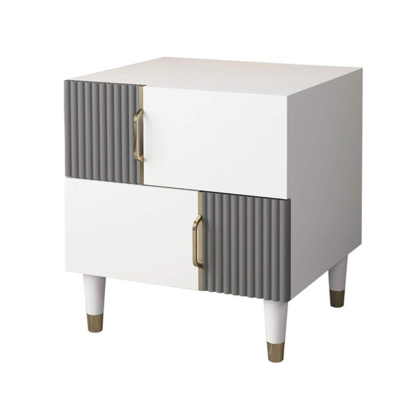 Designed with functional aesthetics, the LUXA side table includes two soft-close drawers accented with gold-toned handles, ideal for storing night-time essentials, books, or accessories. The vertical ribbed drawer detailing adds a rich texture that catches the eye without overwhelming your space.