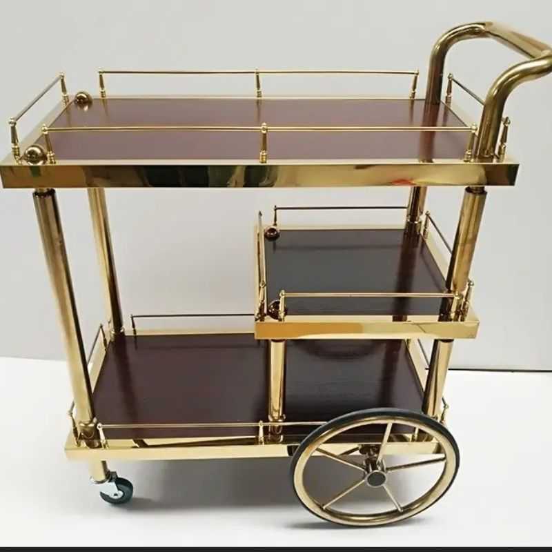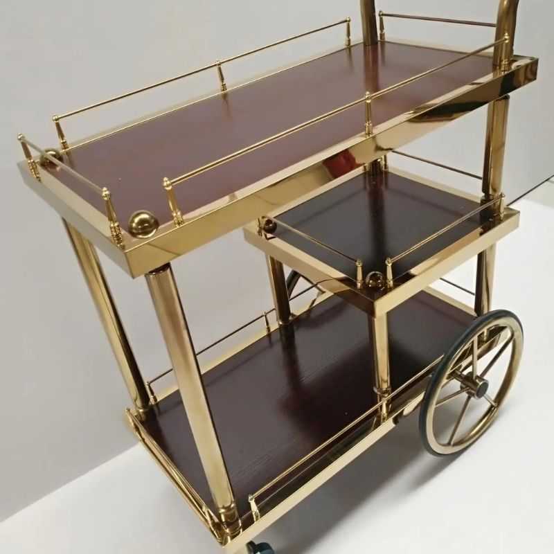 Elevate your hosting game with this luxury gold bar trolley with wheels, a perfect blend of style and functionality. Crafted with a sturdy powder-coated metal frame and finished in a rich gold tone, this 3-tier serving cart adds a touch of glam to any space.
