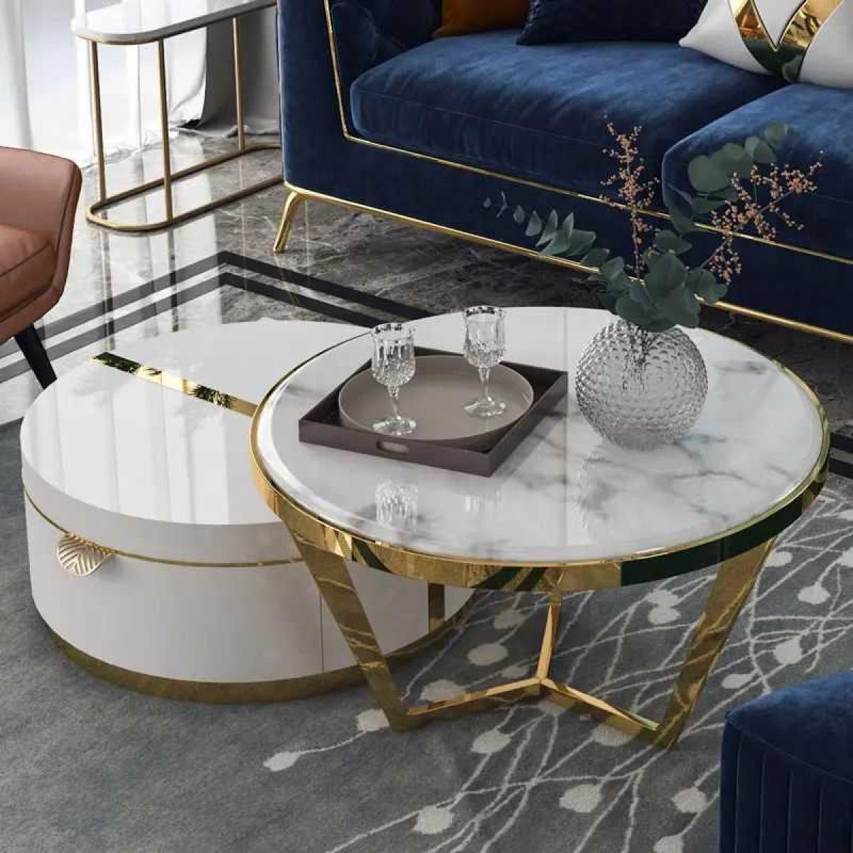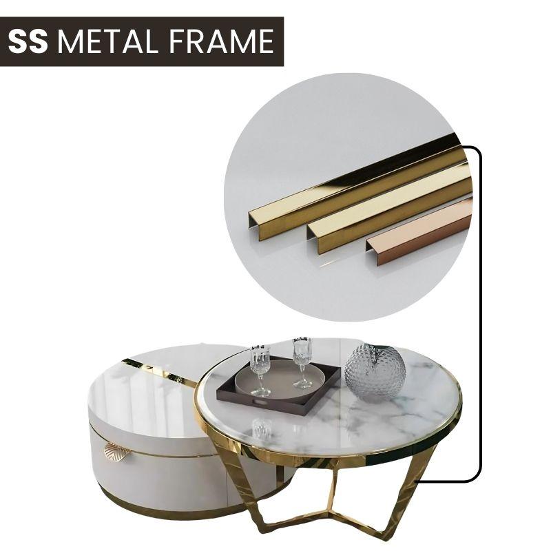 Enhance your living space with the Lyra Marble Luxury Centre Table by Woodensure, a perfect blend of refined charm and modern luxury. This piece features a pristine white marble top and a sleek gold frame, bringing elegance to any room.