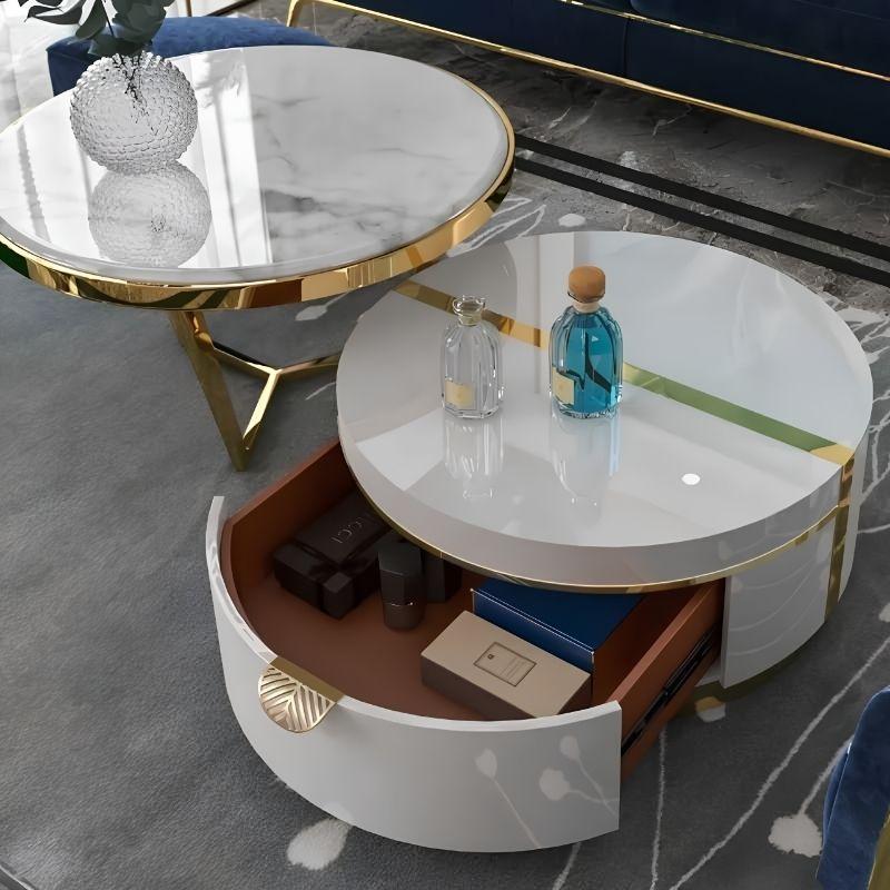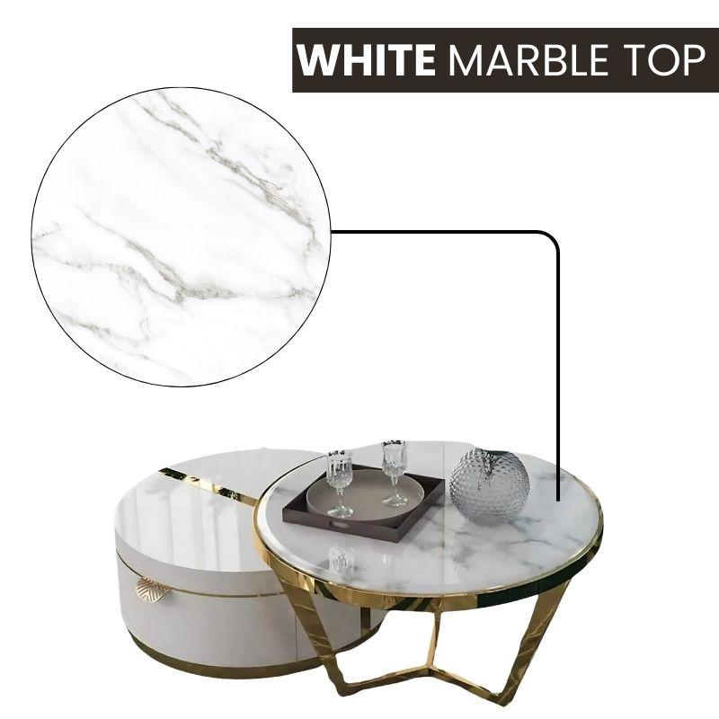 Luxurious Marble Top: Pristine white marble with a gold frame.