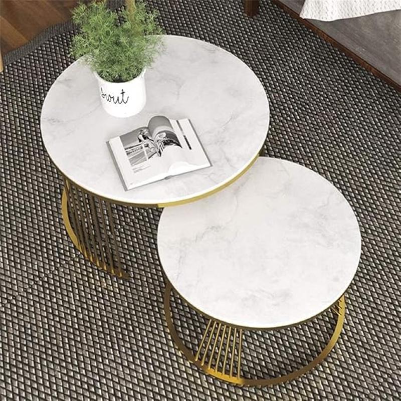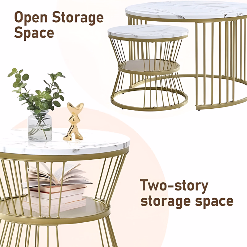 A marble nesting tables set of 2 is a pair of tables featuring a marble top and a space-saving design. The smaller table slides under the larger one for flexible use, making them ideal as side tables, nightstands, or accent furniture in living rooms, bedrooms, and offices.