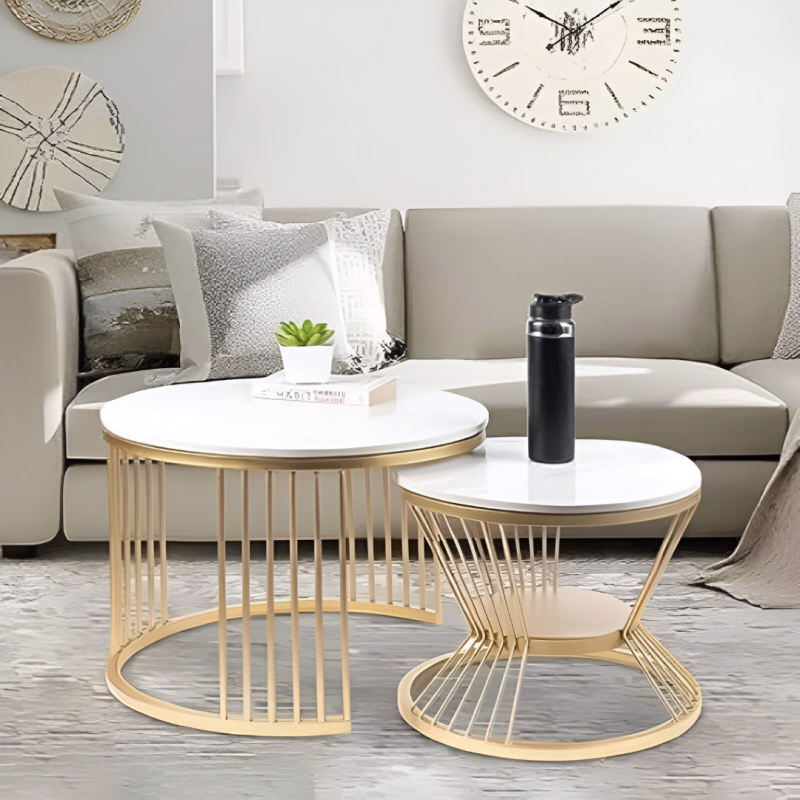 Yes. These white marble nesting tables are made with premium polished marble and sturdy metal legs, making them resistant to daily wear, heat, and minor scratches while maintaining their luxurious appearance over time.