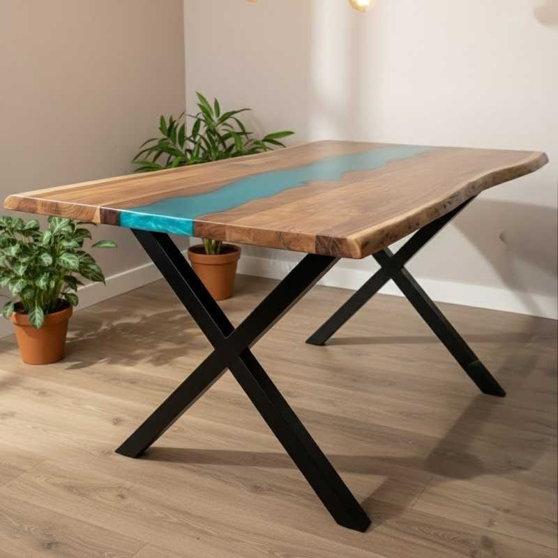 Minimal 4 Seater Dining Table – Epoxy Resin & Wood