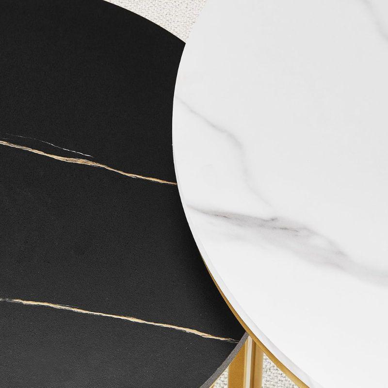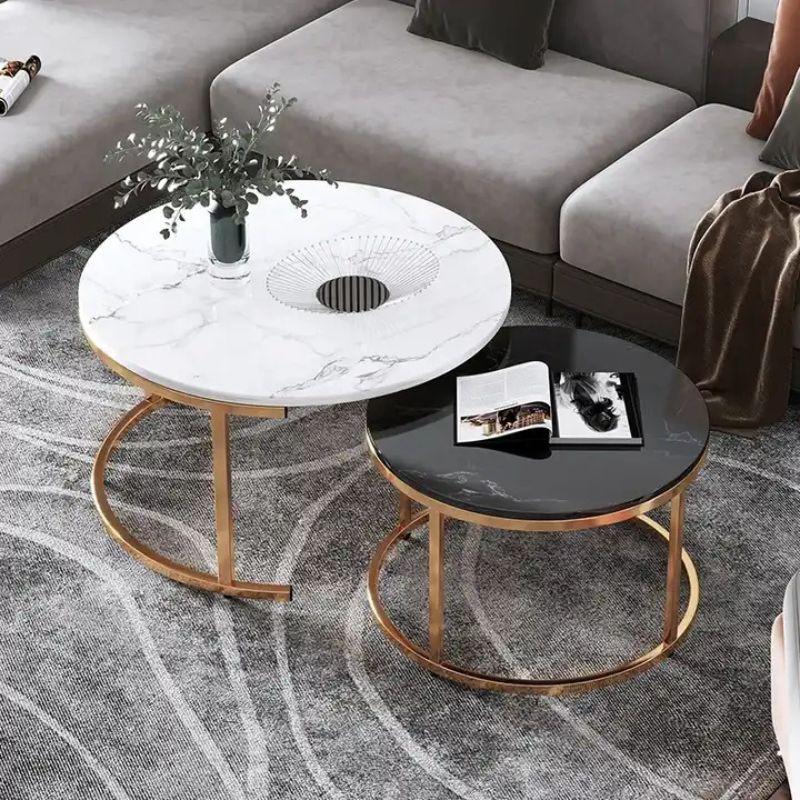 Purchase a round minimal marble nesting table set of 2 made of golden powder coated stainless steel with white and black marble tabletop. A stunning accessory that can serve in many ways to enhance the design and provide versatility for one home. Having a blend of marble along with the stainless steel table is provided to be constructed in a way. Getting the tables that are trendy for the living room cleaned only require a wedge wet towel. This circular minimal round marble nesting table set serves the purpose of the Marble top innovation of the table to be raised to the ideal writing, reading or drinking height. Conversely the mini table may be placed below the large table in order to optimize the diversified interest.