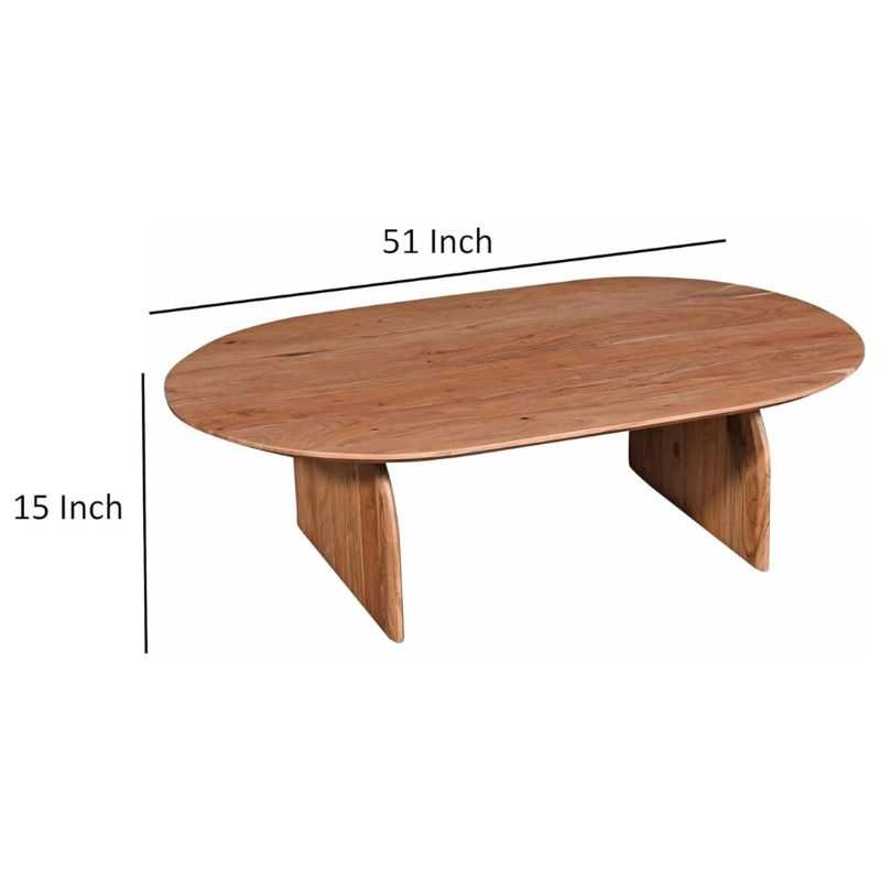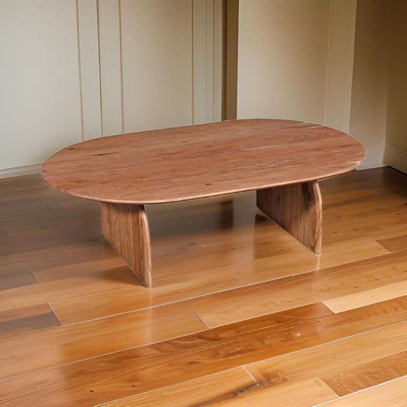 Bring timeless sophistication to your home with this Minimalist Acacia Wood Coffee Table in a soft oval silhouette. Handcrafted from solid acacia wood, this piece celebrates simplicity with elegance. The gently curved edges and smooth top surface make it a stylish yet safe addition to any modern living room. Its broad tabletop and uniquely curved legs deliver both visual appeal and structural integrity. Perfect for luxury homes, apartments, and contemporary interiors, this coffee table adds warmth and functionality without overwhelming your space. Whether you're serving guests or decorating with books and candles, this center table enhances your room with natural charm and minimalist finesse.