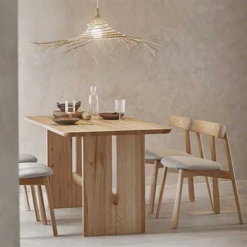 Upgrade your dining room with this minimalist acacia wood dining table, perfect for modern homes. Its light acacia finish and simple braced legs offer a clean, sturdy design thatโs ideal for everyday meals or intimate gatherings. This 4-seater table combines functionality with understated elegance. Order now to refresh your dining space!