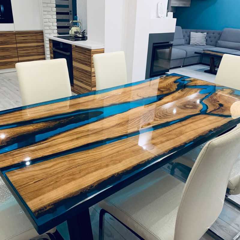 Make a bold statement in your dining space with this Epoxy Resin River Dining Table featuring a stunning blue transparent resin design flowing between live-edge solid wood slabs. Handcrafted with precision and passion, this 6-seater table is more than furnitureโit's functional art. The glossy finish highlights the organic wood grain while adding depth with the captivating river effect. Ideal for luxury dining rooms, modern lofts, and artful interiors.