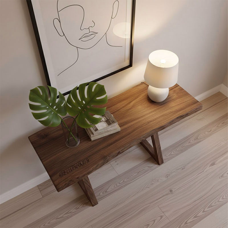 Live Edge Wood Table Top: This is its console table's gorgeous live edge oak trees are primary appeal. Each tabletop displays various grain patterns and cracks the solid wood, but they have been kept at edges.