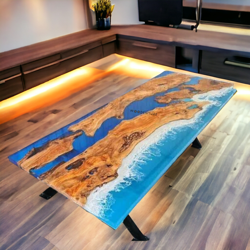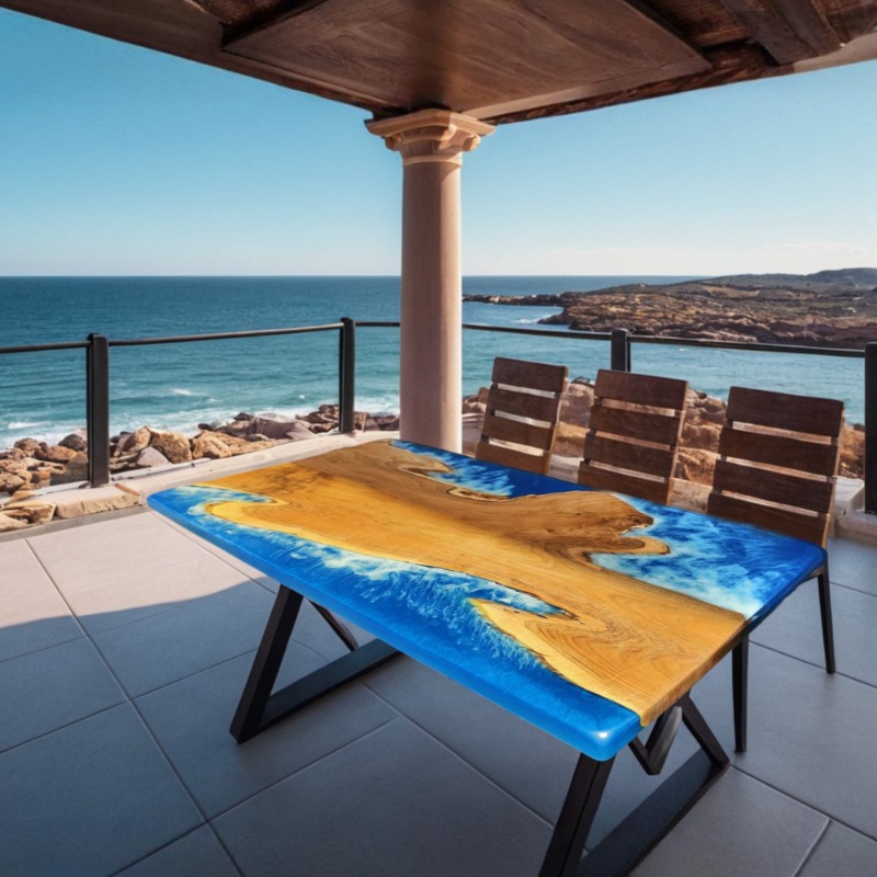 The Oceanic Oasis Epoxy Resin Dining Table with metal legs bridges the gap between classic and rustic styles, and thus, makes your dining experience even better. This table will be on the list of favorite places in your home, and it will stand as the centerpiece of your family holidays or regular meals for many years to come. Its strong construction, one-of-a-kind design, and easy maintenance are among the factors that make it the top choice for the dining room.