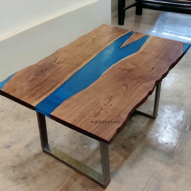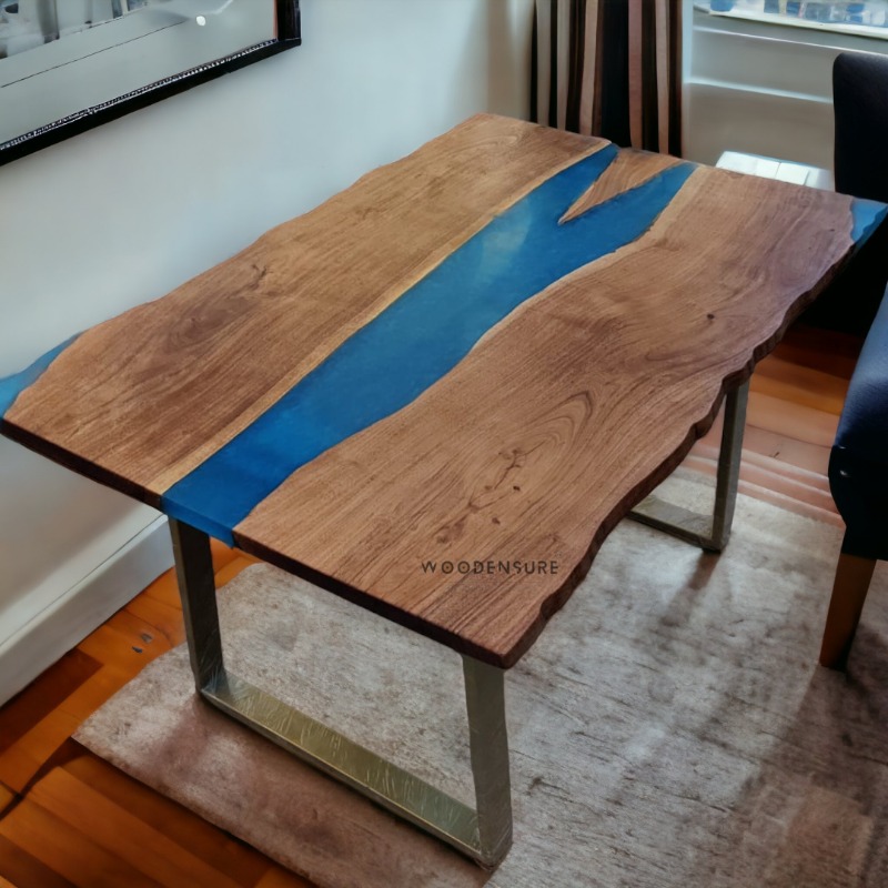 Ocean's Edge Dining Table Blue Epoxy Resin Dining Table