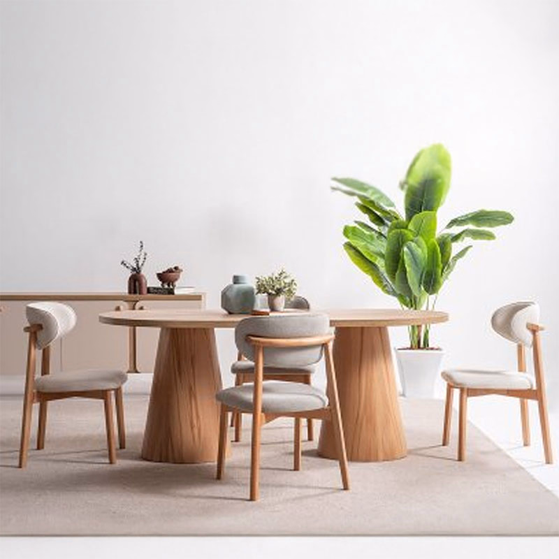 Transform your dining space with this beautifully crafted solid wood dining table, thoughtfully designed for modern homes. Finished in a natural tone, it highlights the rich grain of the wood while bringing a sense of warmth and authenticity to your interiors. The smooth oval tabletop offers generous space and comfortably seats up to six people, making it ideal for everyday family meals as well as relaxed weekend gatherings.