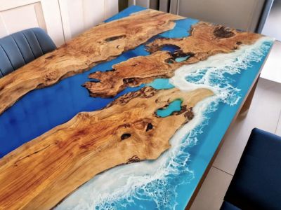 River Design: This is all brought about by the translucent black epoxy resin giving the piece a mysterious yet sophisticated appearance. The river design solution, frequently referring to the usage of river ones, or even wood, looks quite organic. The contrast of the dark, yet translucent epoxy with the light reflecting off the river pattern on the desk’s surface is simply fascinating.