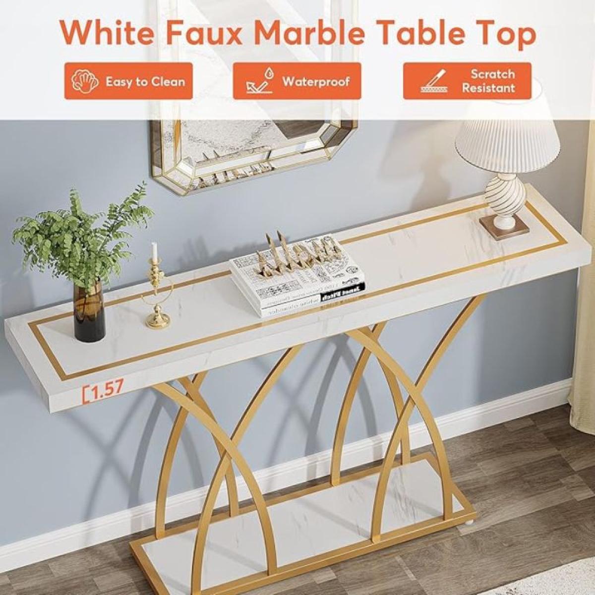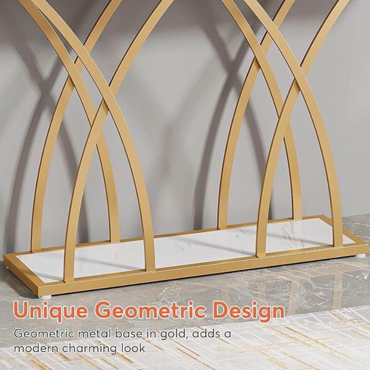 The Orb Grace Console Table is rich in design and offers todayโs different homes a sophisticated look into contemporary design. Golden base in gracefully curved design and the accent of the central orb; this console table is nothing less than a classic. The gold finishing and unique workmanship of the base make this piece quite glamorous and sweet-looking, and it is quite firm and reliable as well. Whether you use it to show off decorative trinkets, your daily home necessity or to add style to your interiors, the Orb Grace Console Table is a perfect piece of grace and elegance.