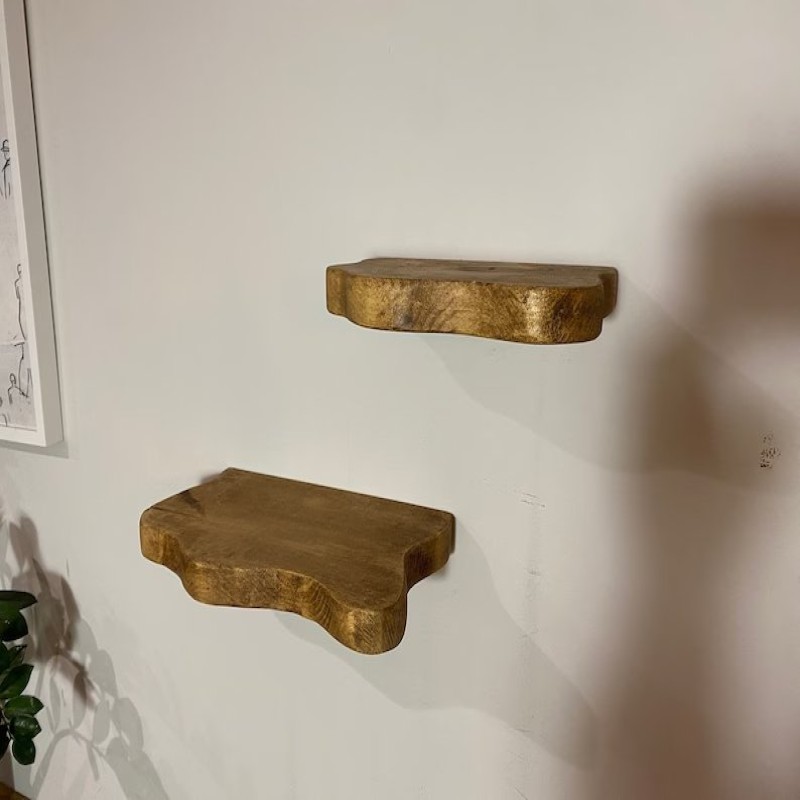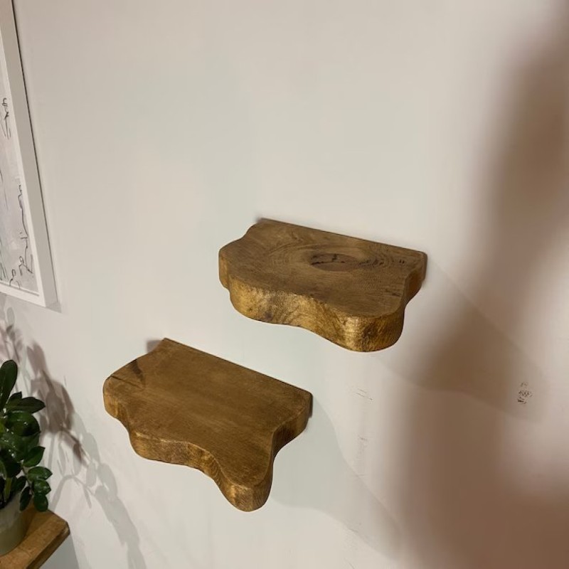 The weight capacity depends on the wall type and installation. On average, our live edge floating shelves can support up to 20-50 pounds when installed on studs or with proper wall anchors.
