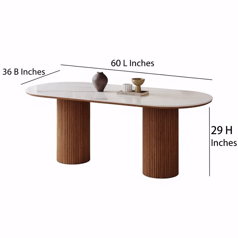 Bring sophistication and functionality to your home with the WoodenSure Dining Table in premium white marble. Designed in an elegant oval shape, this 6-seater table pairs a polished marble top with fluted cylindrical wooden bases, creating a stunning centerpiece that blends timeless style with modern craftsmanship.