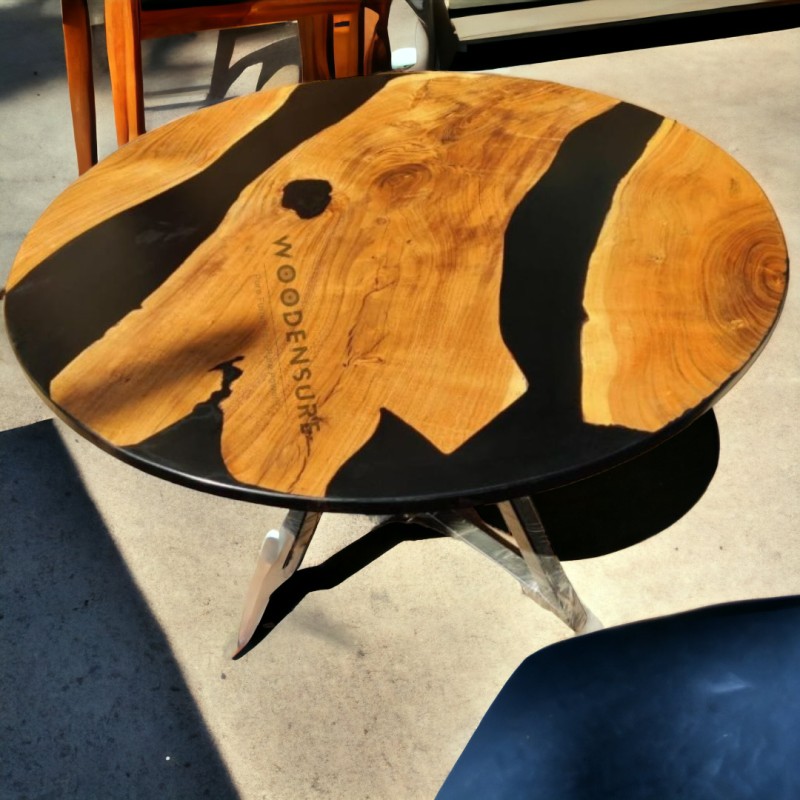 A clear epoxy resin is usually combined with wood or other materials to create an epoxy resin dining table. The end product is a distinctive piece of furniture that is sturdy and can be personalized with different hues and patterns.Wood or other materials are first prepared and arranged into the desired form and size to make an epoxy resin dining table. The epoxy resin is then combined and poured onto the wood's surface, giving it a smooth, glossy sheen that brings out the grain's inherent beauty.Durability is one advantage of an epoxy resin eating table. The resin forms a robust, shielding coating that is immune to scuffs, stains, and heat, making it an excellent